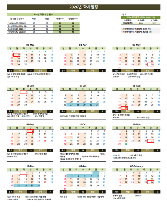 상기 학사일정은 센터 운영 상황에 따라 일부 변경될 수 있습니다.