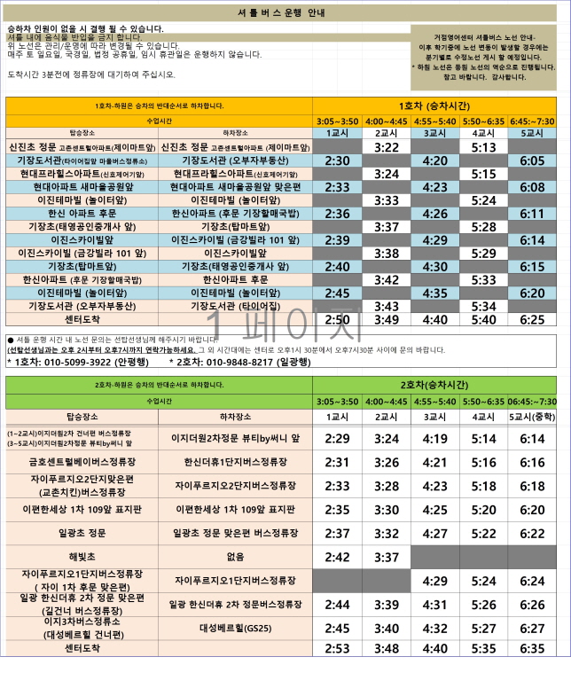 2026년 봄학기 셔틀버스 운행안내-1호차 시간 변경되었습니다.